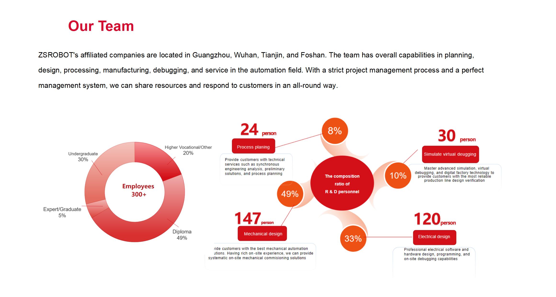 ZSROBOT currently has about 300 employees, of which R&D and technical personnel account for over 50%. Committed to product R&D, technological innovation, and talent construction, the company has obtained over 180 independent innovation patents (including 60 invention patents).